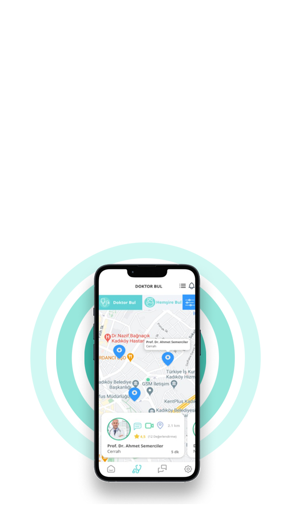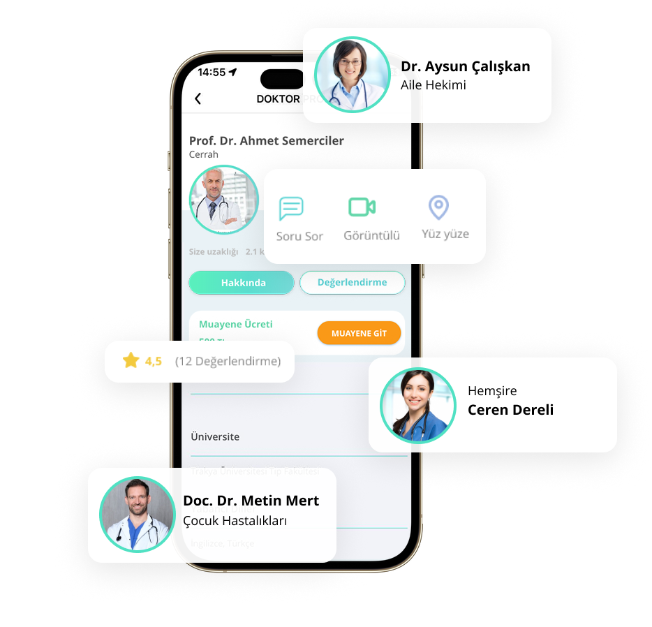 Uygulama üzerinden sağlık profesyonelleri ile anında online ya da yüz yüze görüş